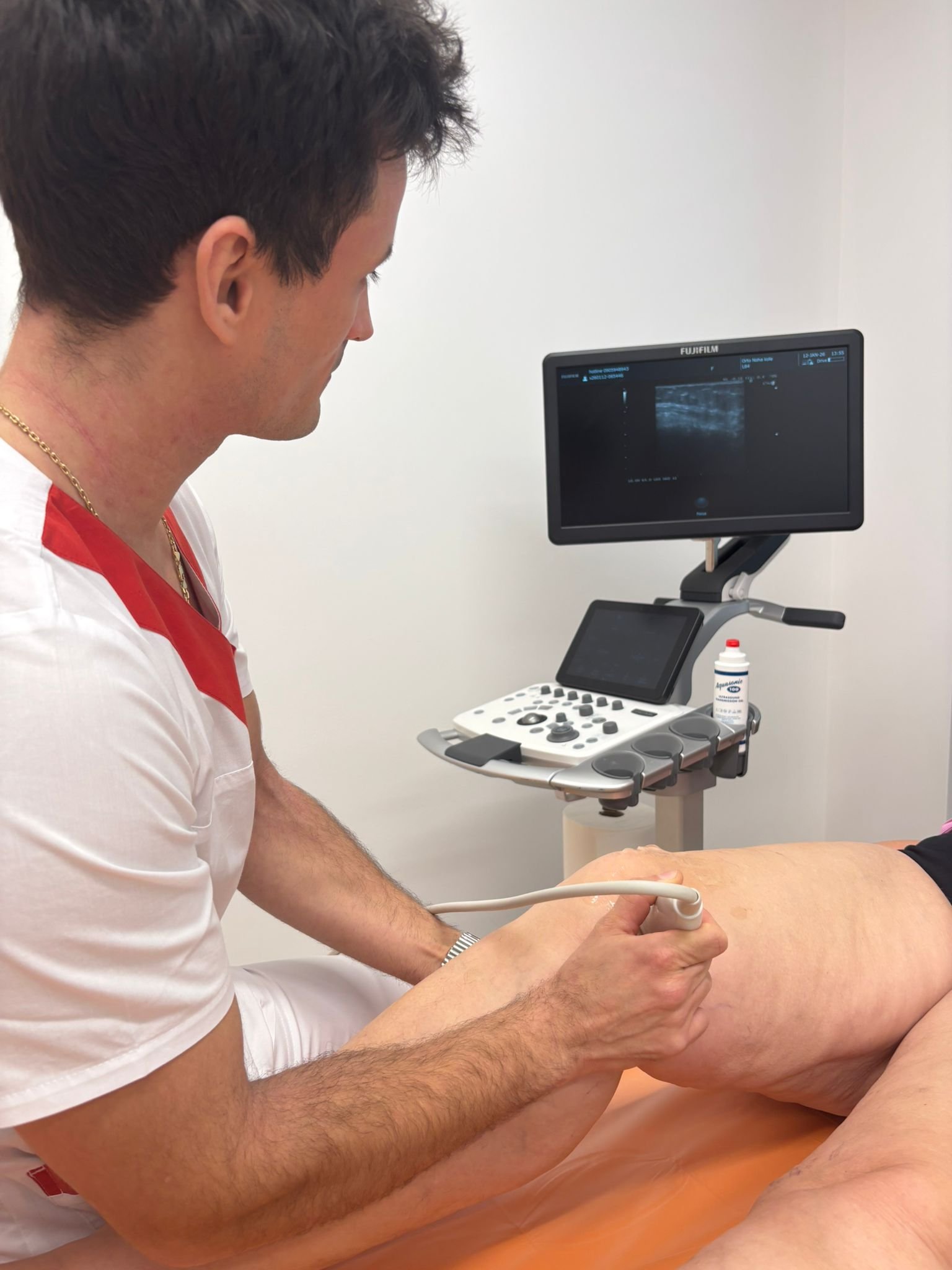 Pri ultrasonografii sa zobrazujú mäkké tkanivá, teda slúži na zhodnotenie stavu šliach, väzov, posudzuje sa pri nej stav búrz – tlmičov trenia v kĺbe, kĺbny výpotok, šírka kĺbnej štrbiny, prítomnosť kalcifikátov a mnohé iné patológie. Medzi jej výhody patrí, že je neinvazívna a rýchla, pacient nie je vystavený vplyvu zdraviu škodlivého žiarenia, kĺb je možné zobraziť v reálnom pohybe, je realizovateľná ambulantne a môžu ju absolvovať aj tehotné ženy alebo malé deti. Jedná sa o jednu zo základných vyšetrovacích metód v ortopédii, ktorú naša ambulancia ponúka.